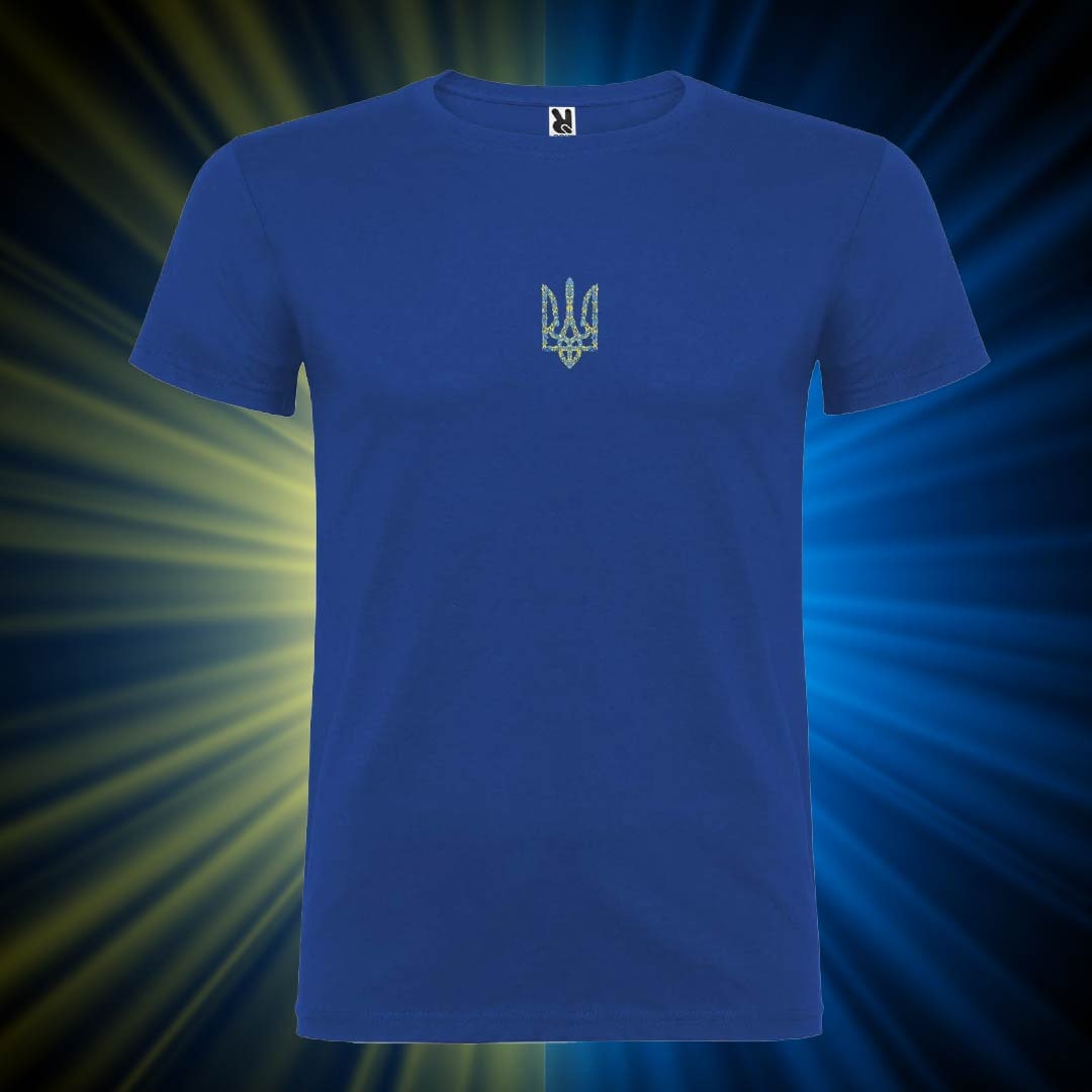 Чоловіча патріотична футболка з жовто-синім Тризубом (8 см) — стильний вибір для тих, хто цінує комфорт і демонструє свою позицію. Натуральна тканина, зручний крій з боковими швами, яскравий принт — ідеально для щоденного носіння або особливих подій. Підкресліть свою індивідуальність зі смаком!