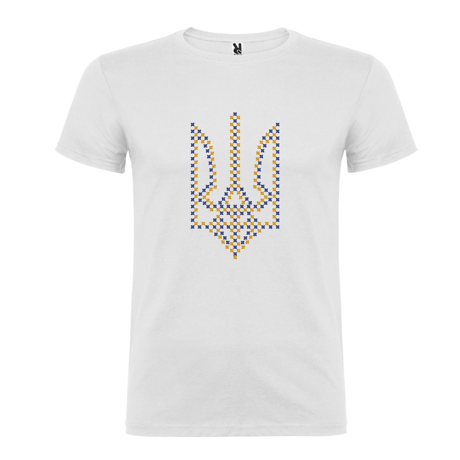 Чоловіча футболка патріотична з принтом Тризуб (імітація вишивки хрестиком): символ української сили. Стильна та комфортна футболка з принтом тризуба, виконаного у вигляді традиційної української вишивки, підкреслить вашу любов до України та її багатих культурних традицій. М’яка бавовна забезпечує комфорт протягом всього дня.