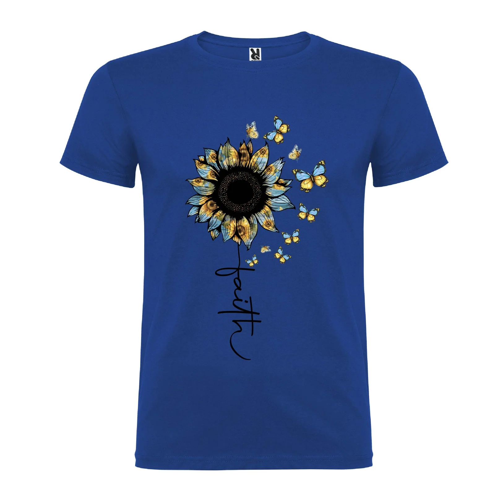 Чоловіча футболка патріотична з принтом “Віра незламна”: сила та стійкість. Стильний дизайн з соняшником та метеликами, доповнений написом “Faith” (віра), символізує незламний дух і віру в майбутнє. М’яка, повітропроникна бавовна забезпечує комфорт протягом всього дня. Прямий крій забезпечує свободу рухів. Легка у догляді, не втрачає колір і форму після багатьох прань. Доступна в широкій розмірній сітці. Замов свою футболку вже сьогодні!