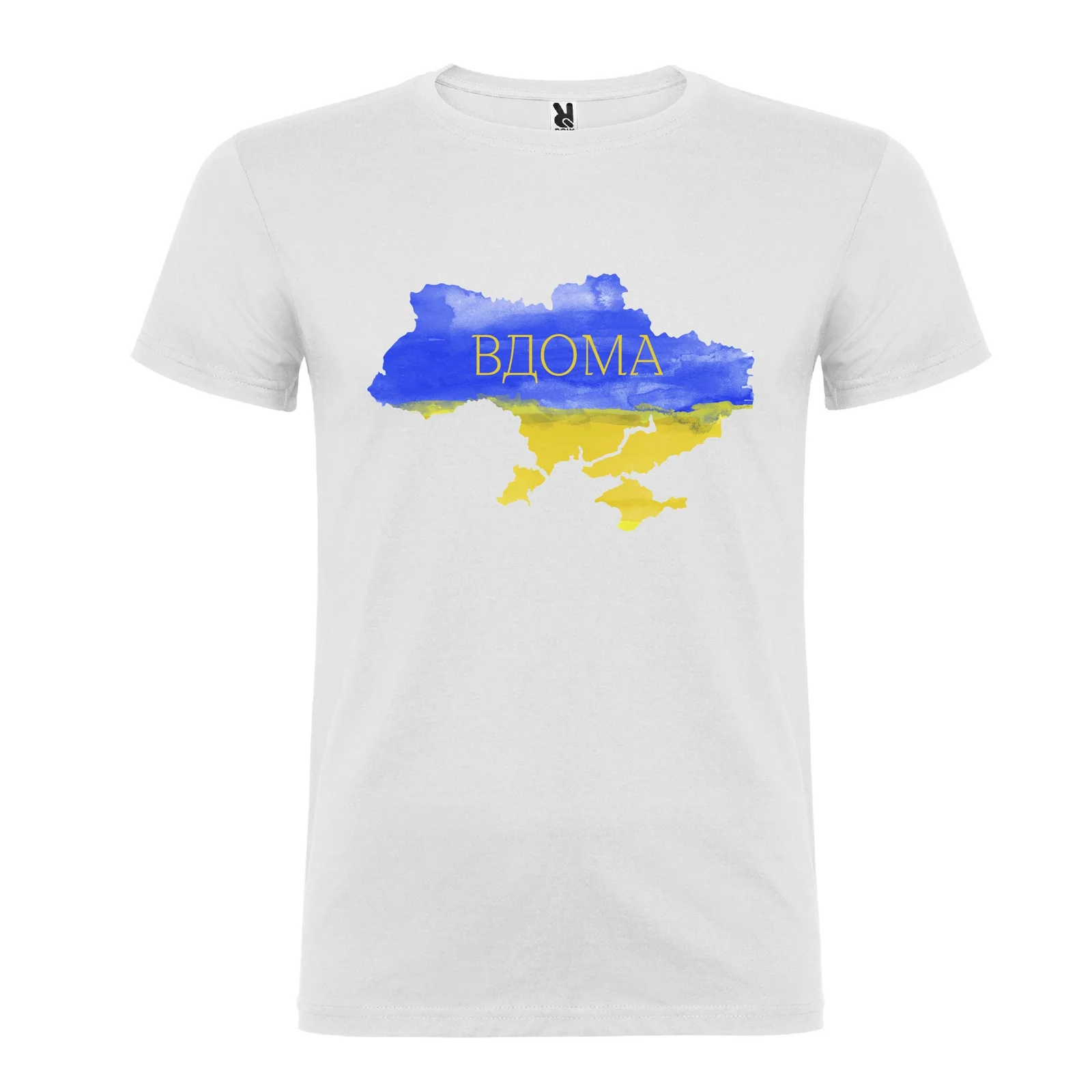 Чоловіча футболка патріотична ВДОМА: відчувай себе вдома у кожному куточку України. М’яка бавовняна тканина та стильний дизайн з мапою України – комфорт та патріотизм разом. Це більше ніж просто одяг – це вираз твоєї любові до Батьківщини.