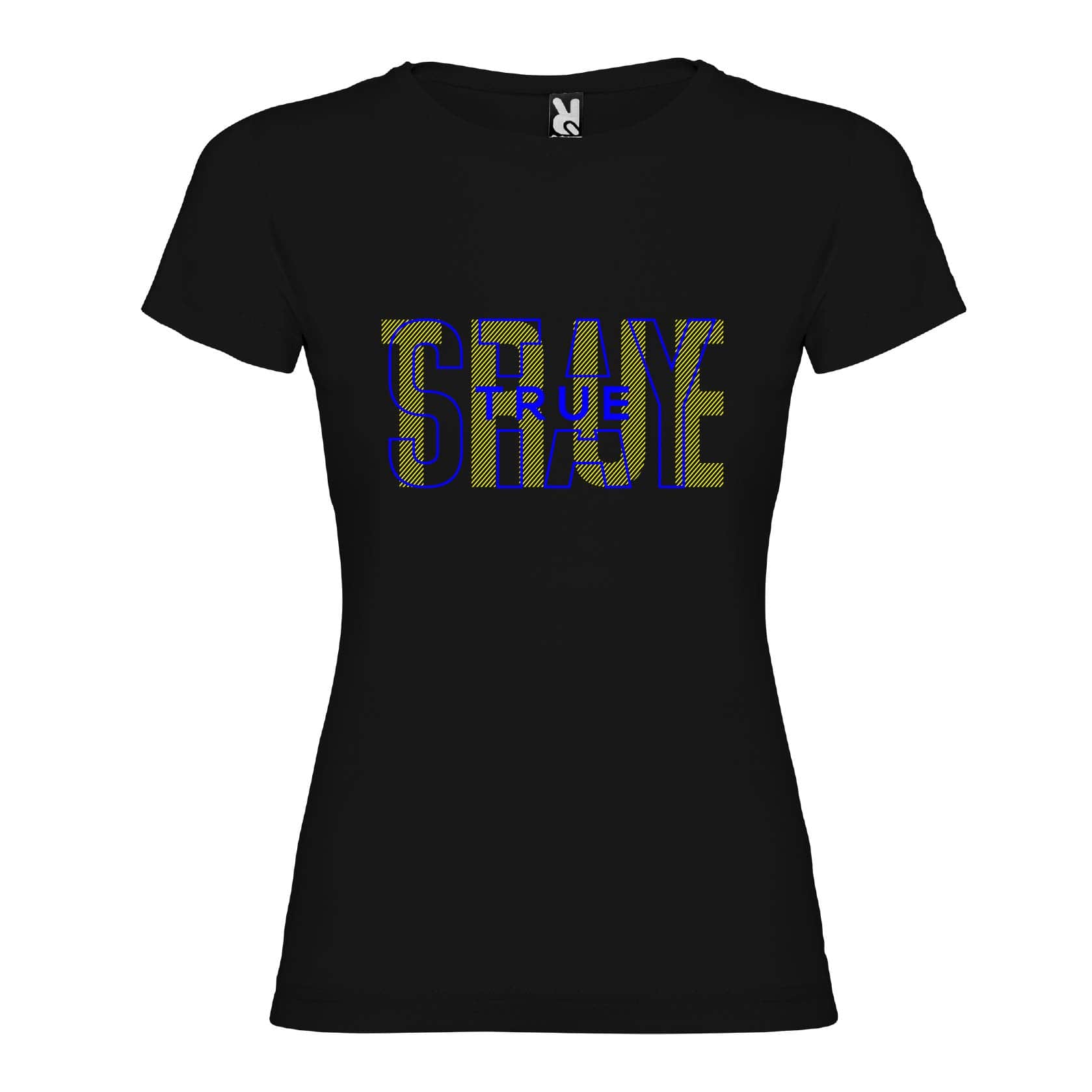 Жіноча патріотична футболка “Stay True” з синьо-жовтим принтом — стильна та зручна, ідеально підходить для тих, хто хоче підкреслити свою любов до України. Високоякісна бавовна, приталений крій і яскравий напис роблять її ідеальним вибором для повсякденного гардеробу або подарунка.
