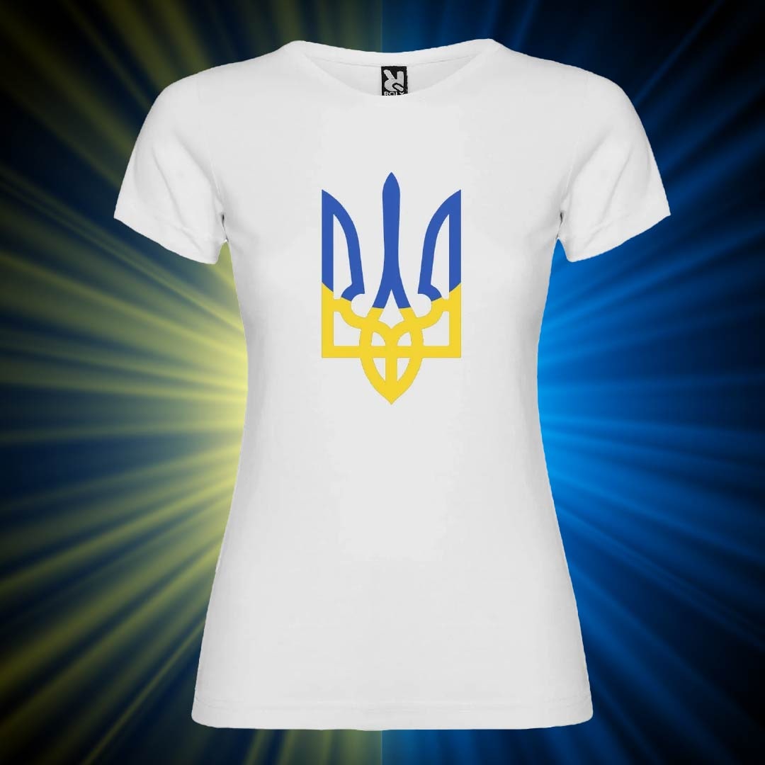 Жіноча патріотична футболка з принтом Тризуб синьо-жовтий: символ української незалежності. Яскравий та стильний принт тризуба у національних кольорах додасть впевненості у вашому образі. Приталений крій підкреслює жіночі форми, а м’яка бавовна забезпечує комфорт протягом всього дня.