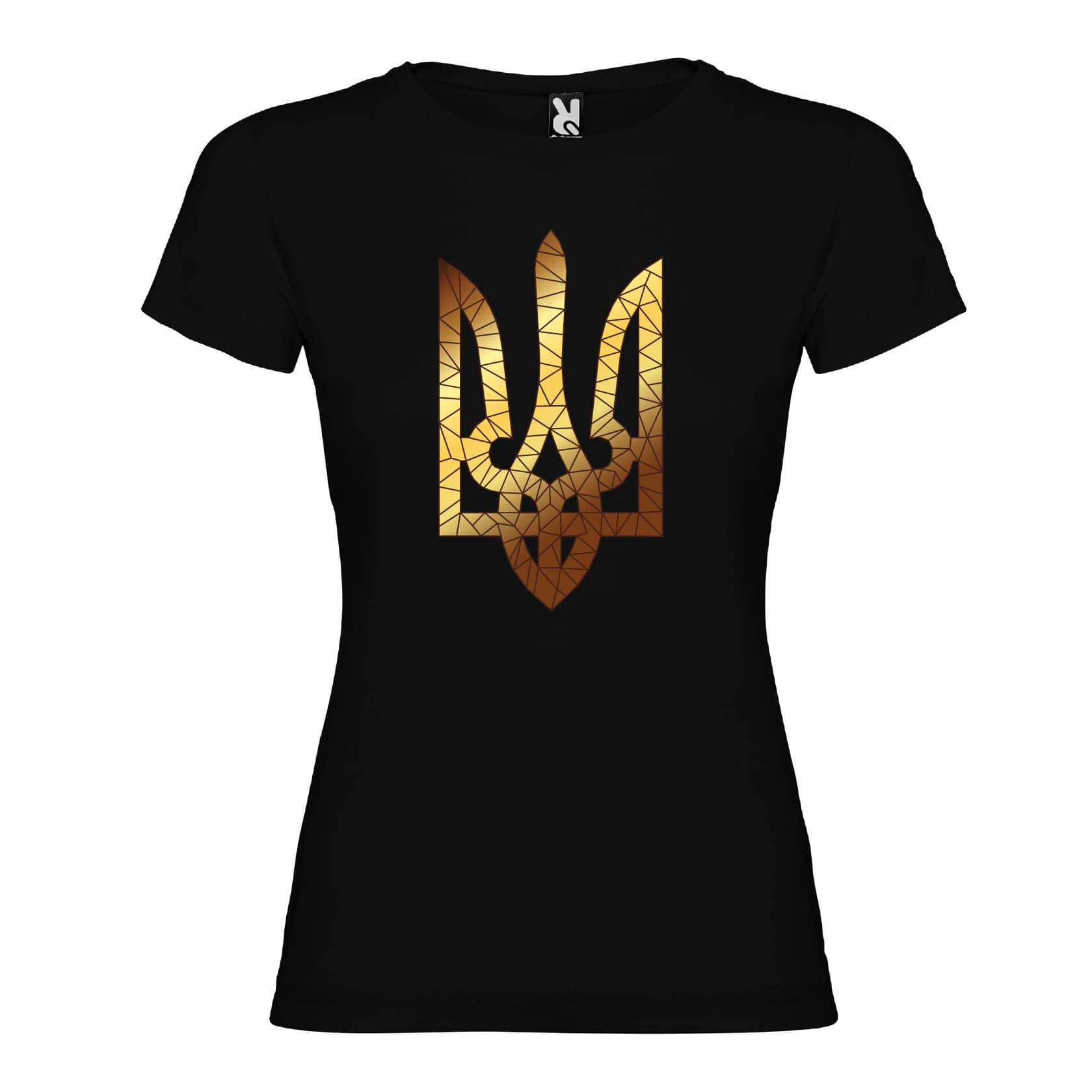 Жіноча футболка з золотим тризубом — стильна чорна футболка з елегантним принтом українського символу. Приталений крій, натуральна бавовна та виразний дизайн, що підкреслює вашу індивідуальність і любов до України. Ідеальний варіант для повсякденного носіння чи подарунка.