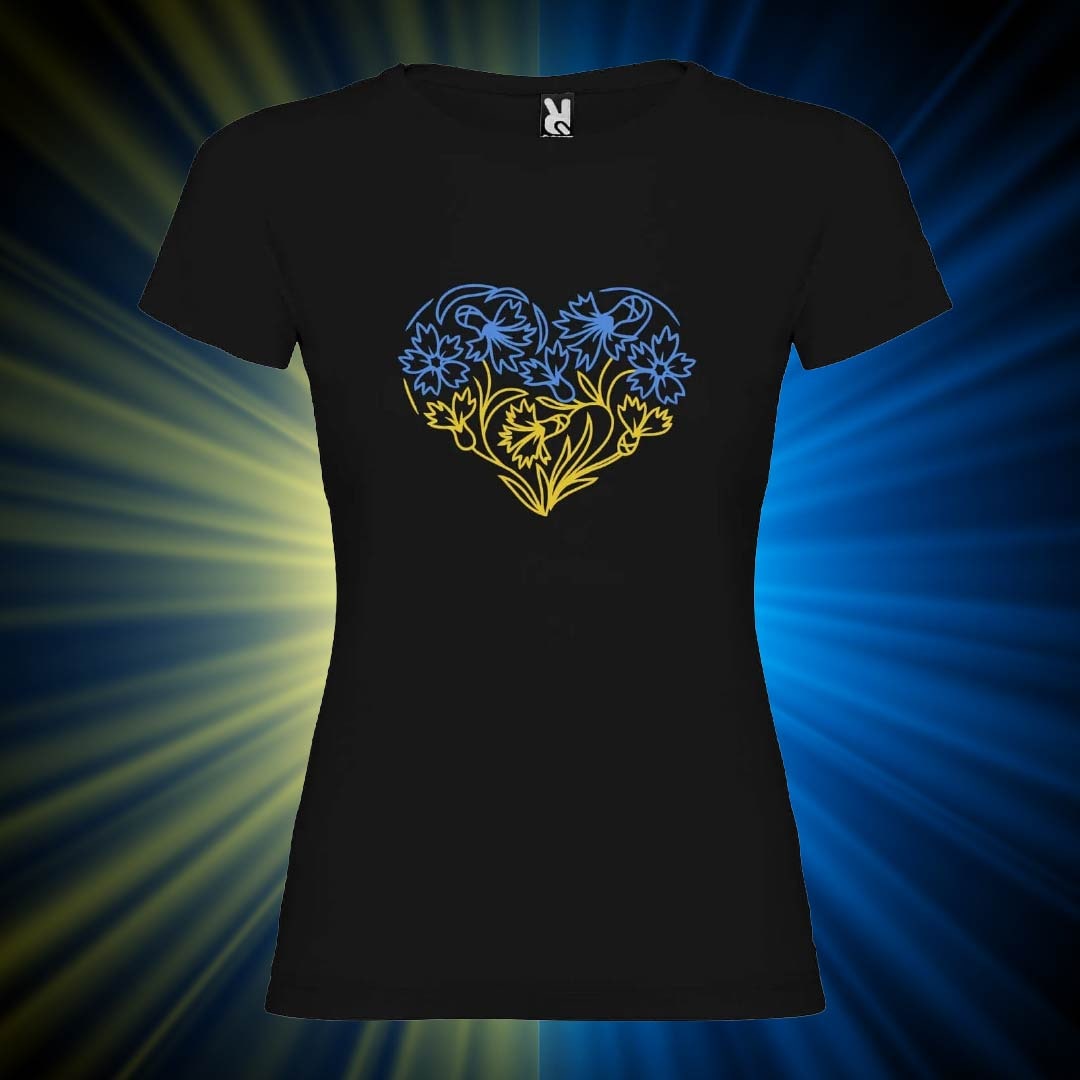 Оригінальна жіноча футболка патріотична з українським орнаментом – це must-have для модниць. Ніжний принт у вигляді серця з волошок додасть родзинки твоєму образу та підкреслить твою індивідуальність.