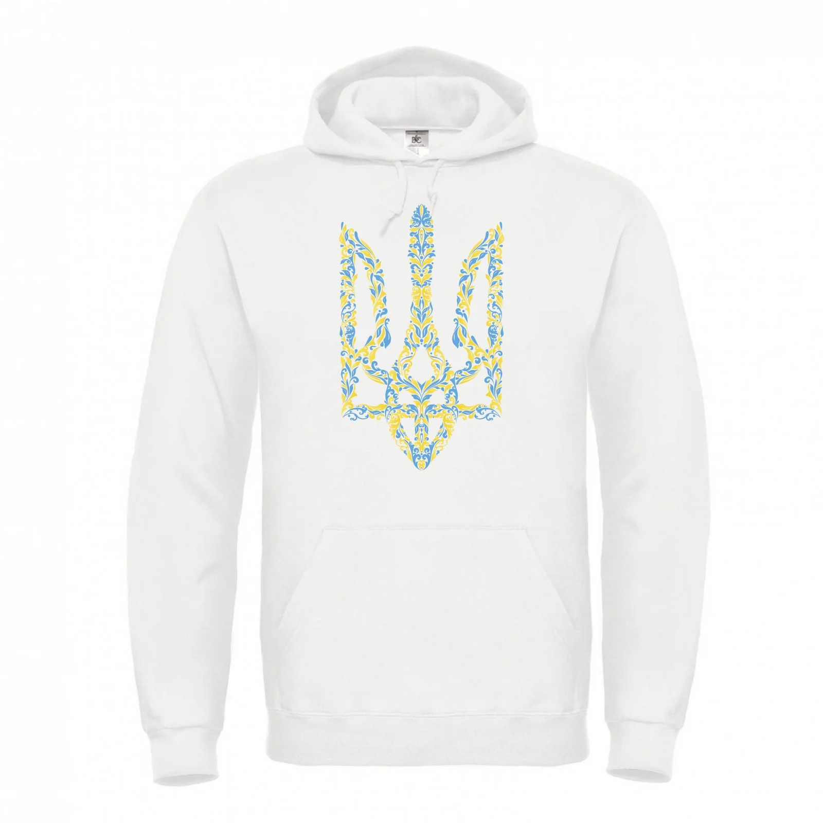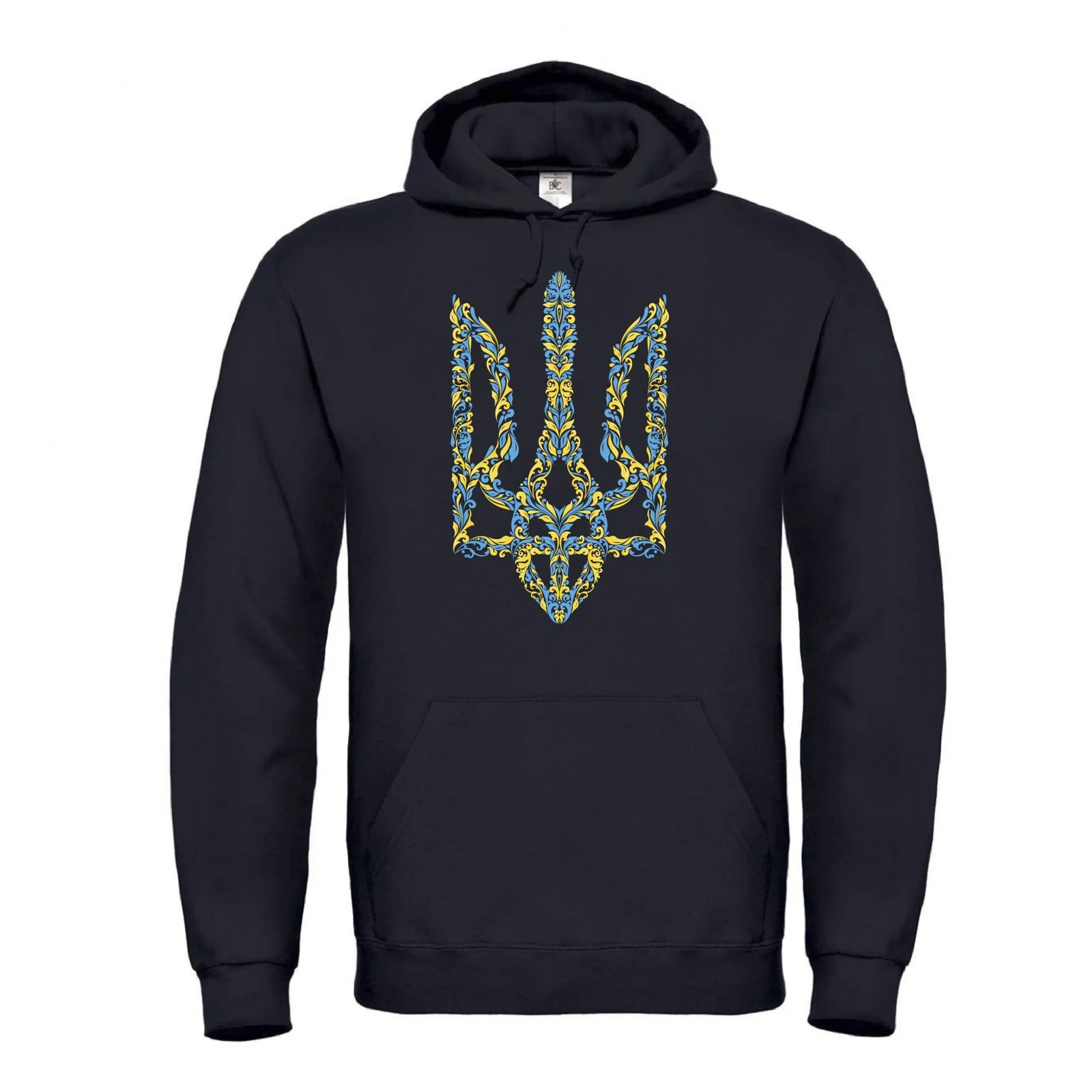 Чоловіче худі “Орнаментальний тризуб” — це вираз сили, гідності та стилю в одному образі. Принт у вигляді великого тризуба виконаний у синьо-жовтій гамі, стилізованій під витончений український орнамент. Він не лише символізує любов до рідної землі, а й демонструє глибоке коріння національної ідентичності.