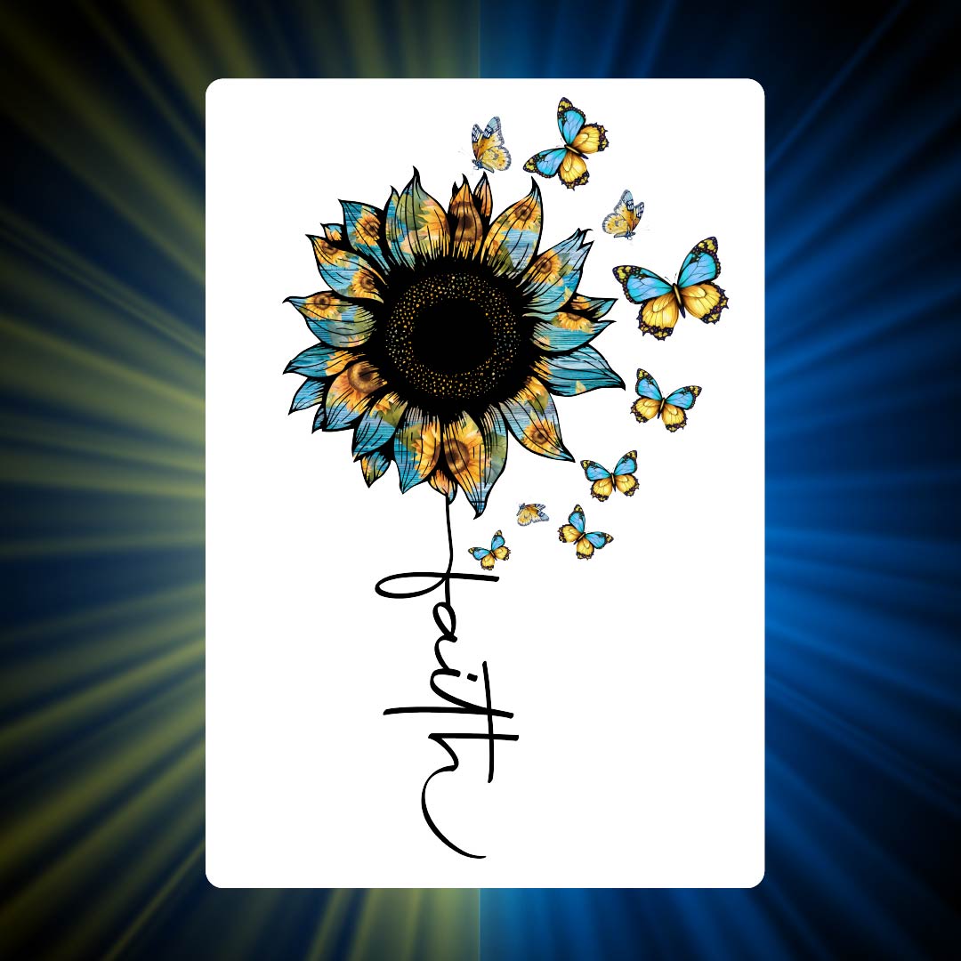 Магніт патріотичний на авто “Віра незламна” з ніжним зображенням соняха і метеликів — символ віри, сили та відродження. Легко кріпиться до авто, не боїться негоди. Доступні різні формати.